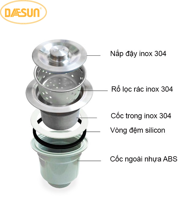 Bộ sản phẩm gồm: 1 chậu rửa bát & 1 Bộ xi phông, ống xả chậu