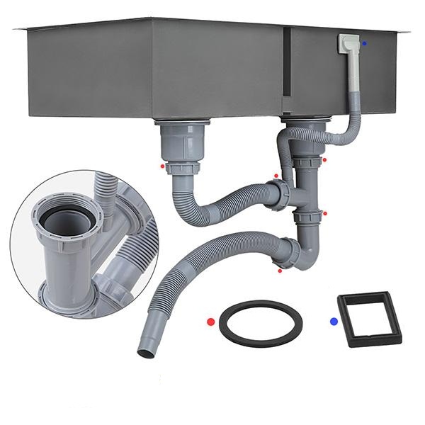 Bộ sản phẩm gồm: 1 chậu rửa bát & 1 Bộ xi phông, ống xả chậu, giá rửa rau củ