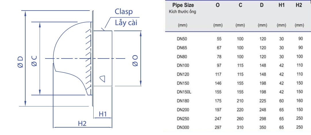 Vent Cap (Circular Outlet) hay còn gọi là Chụp thông hơi là sản phẩm được sử dụng trong các ứng dụng thông gió của các công trình, thông gió cho phòng bếp, phòng tắm và các các vị trí khác của tòa nhà tùy theo nhu cầu sử dụng