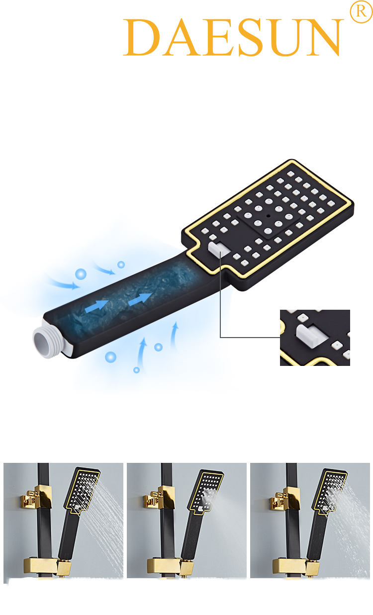 Bát sen & tay sen được làm từ nhựa ABS với nhiều đầu phun tạo áp lực nước mạnh cho bạn cảm giác thoải nhất khi tắm gội. Công nghệ Air Pump giúp không khí được lưu thông cho lượng nước đều & liên tục như những hạt mưa.