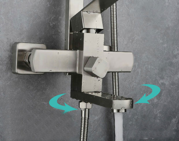Đế cài tay sen có nút điều chỉnh vị trí dễ dàng trên ống đứng, vị trí cài tay sen có thể xoay 360 độ tiện lợi khi sử dụng.