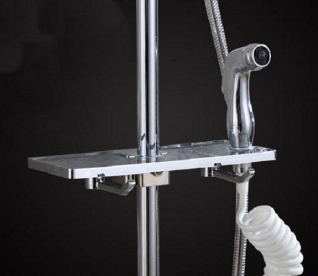 + Kết hợp giá để đồ và vòi xịt vệ sinh tiện dụng