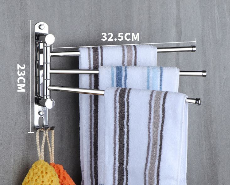 Được thiết kế với 3 tầng treo , các tầng đều xoay 180 độ , gấp gọn vào tường cho không gian phòng tắm nhà bạn thêm rộng rãi ,