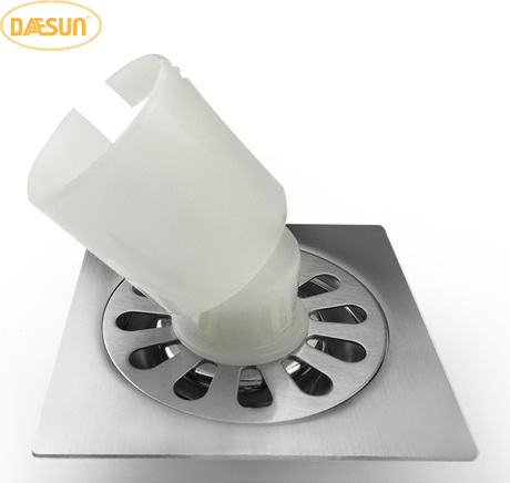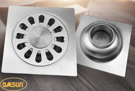 Thoát sàn ngăn mùi INOX 12x12cm DAESUN DS512. Có lỗ thoát nước cho máy giặt.