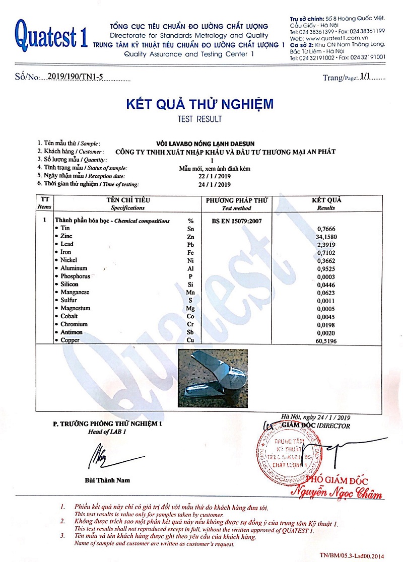 * Chất liệu mẫu sản phẩm đã được kiểm định tại Tổng cục Tiêu chuẩn Đo lường Chất lượng - TRUNG TÂM KỸ THUẬT TIÊU CHUẨN ĐO LƯỜNG CHẤT LƯỢNG 1