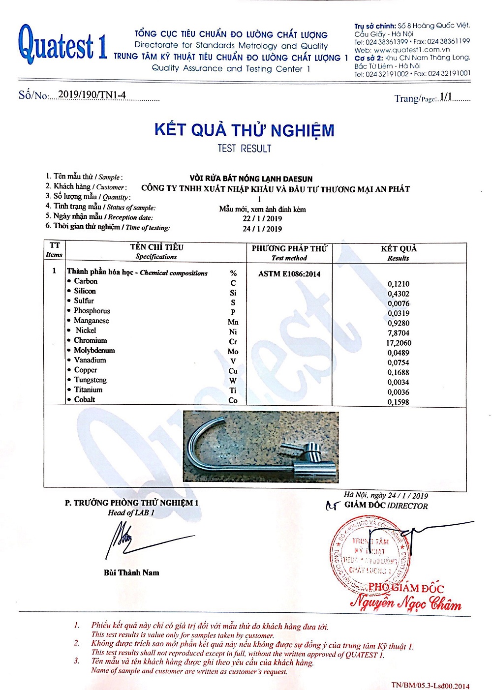 Thân vòi : Sản phẩm được đúc từ 100% INOX SUS 304 ( Đạt chuẩn EU và USA). Các sản phẩm đều được trải qua bài kháng acid 120 giờ để đảm bảo nước xi mạ không bị mờ ố trong thời gian dài.