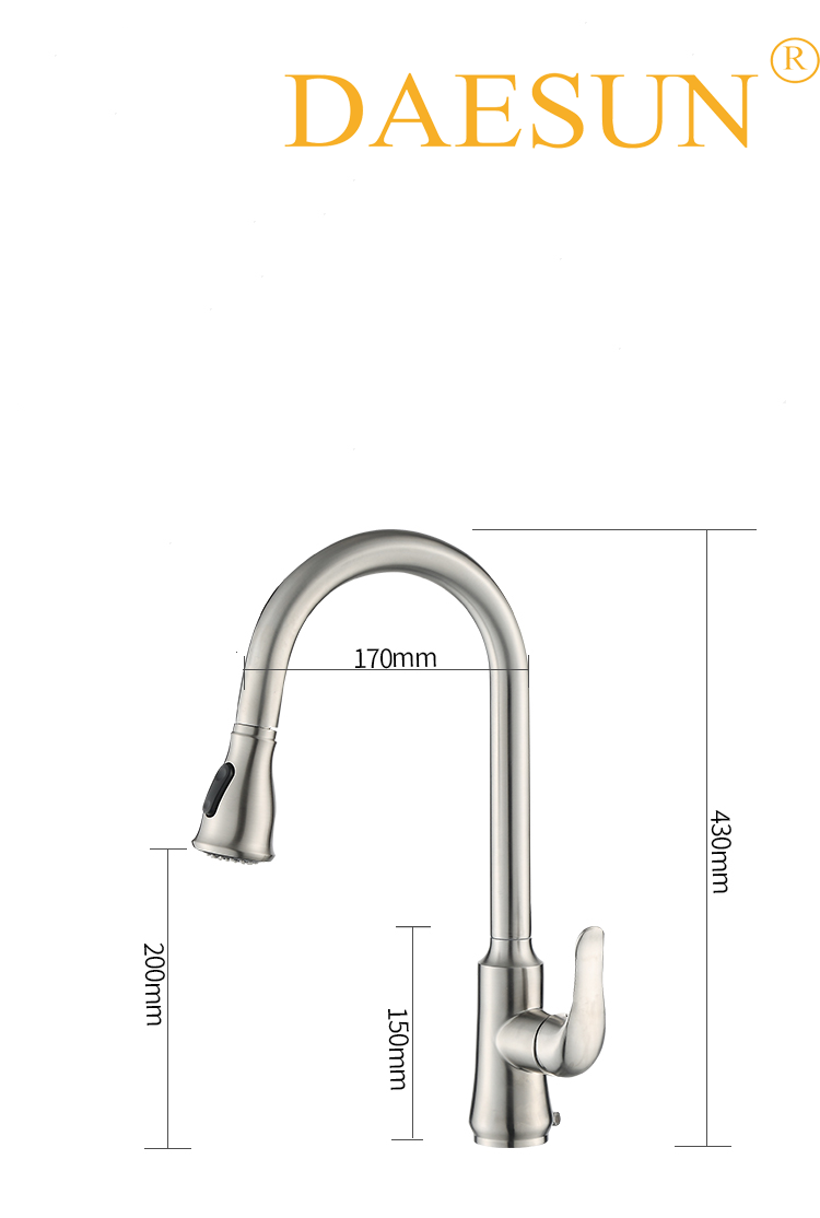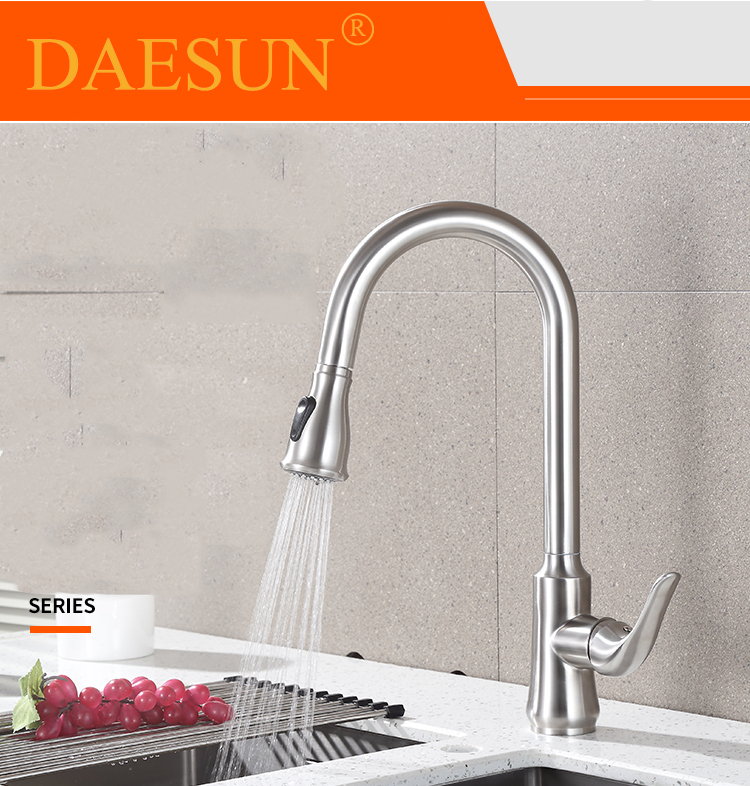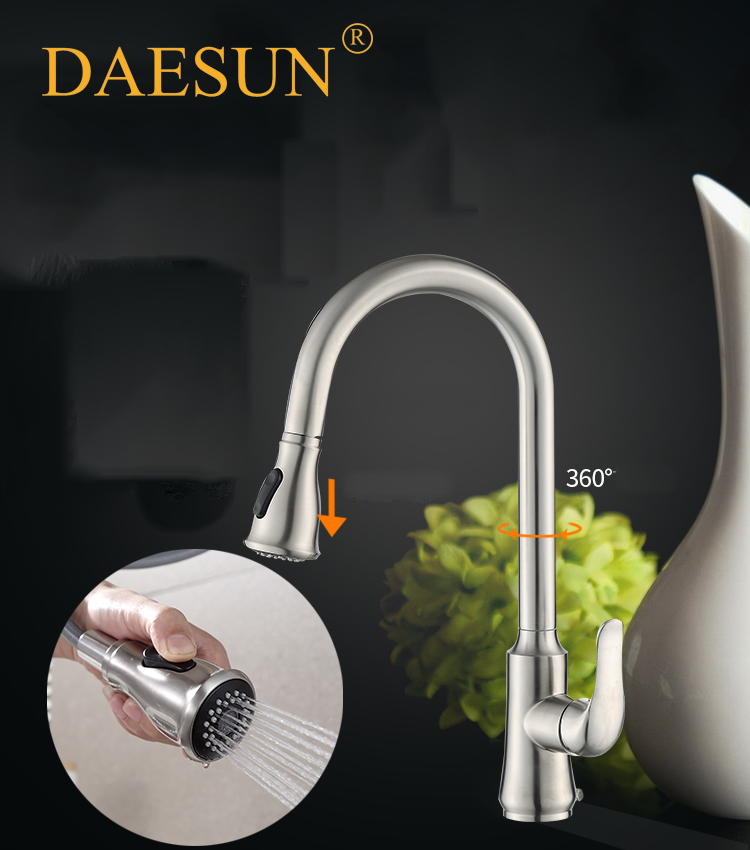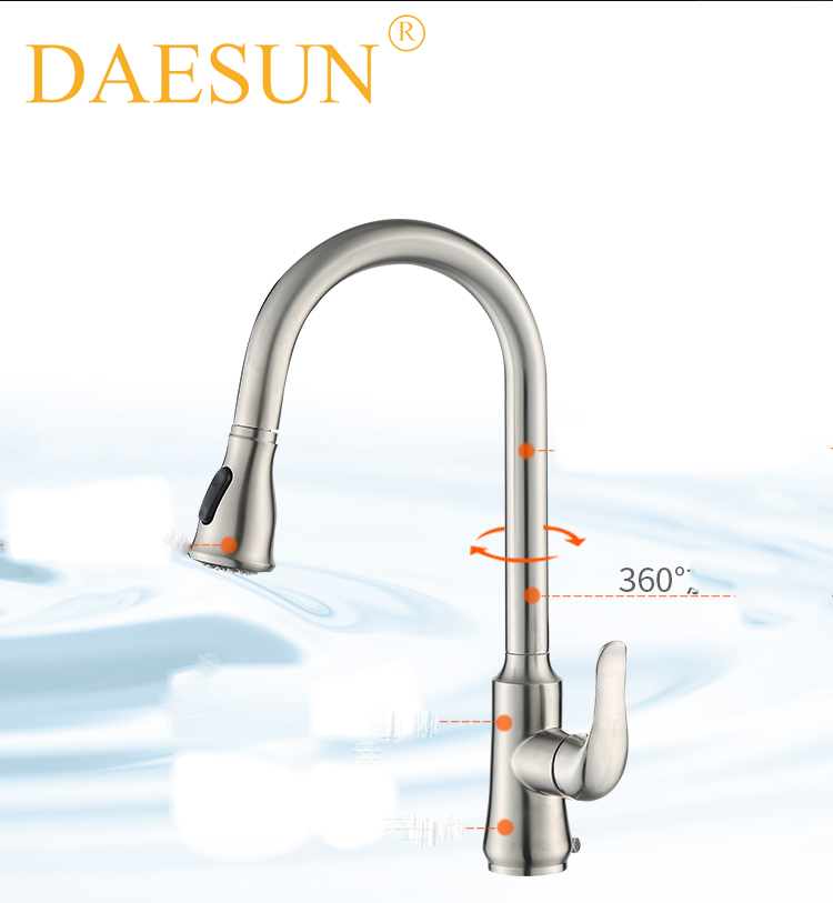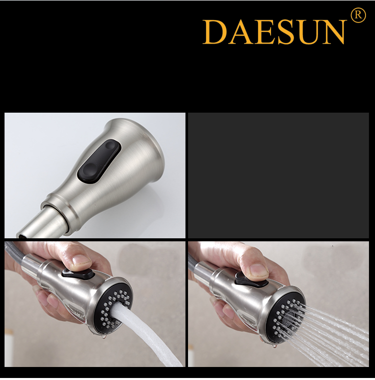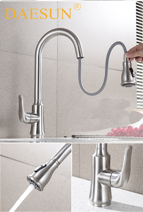 VÒI RỬA BÁT NÓNG LẠNH-DÂY KÉO DAESUN DS 4232 (dây rút) có thiết kế đặc biệt với phần đầu vòi có thể kéo dài như vòi tắm hoa sen giúp công việc rửa chén bát, rau củ của chị em trở nên dễ dàng, thuận tiện hơn.
